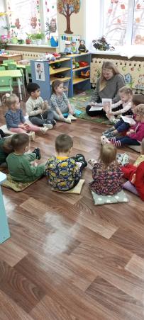 Младшая группа отметила день рождения Мамина-Сибиряка, познакомившись со сказкой «Козявочка». Мама воспитанницы прочитала произведение и провела тематические игры. Это способствует развитию интереса к чтению.