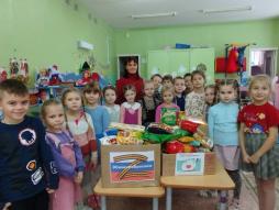 Ребята подготовительной группы вместе с родителями и педагогами собрали продукты и средства гигиены для солдат СВО.
